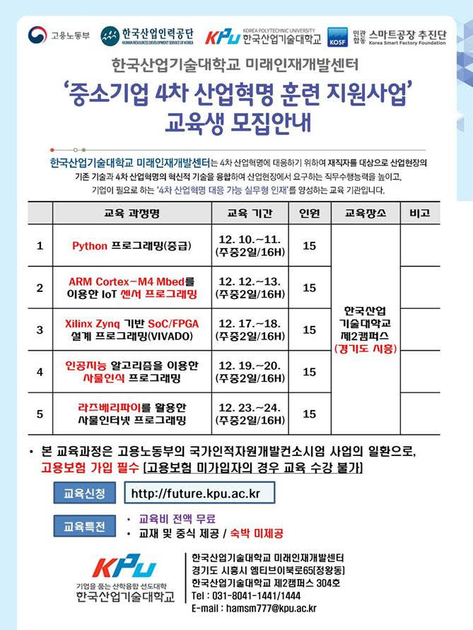교육 과정 상세 내용은 아래에 있습니다. 교육 신청은 산업기술대학교 미래인재개발센터 신청링크