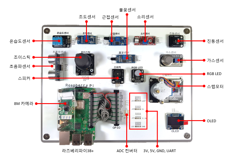 - 하드웨어 기초 개념 및 확장 포트 이해 - 파이썬을 이용한 하드웨어 제어 실습 - 8종의 센서, 7종의 액츄에이터 실습 GPIO 제어: Python, C 언어 |